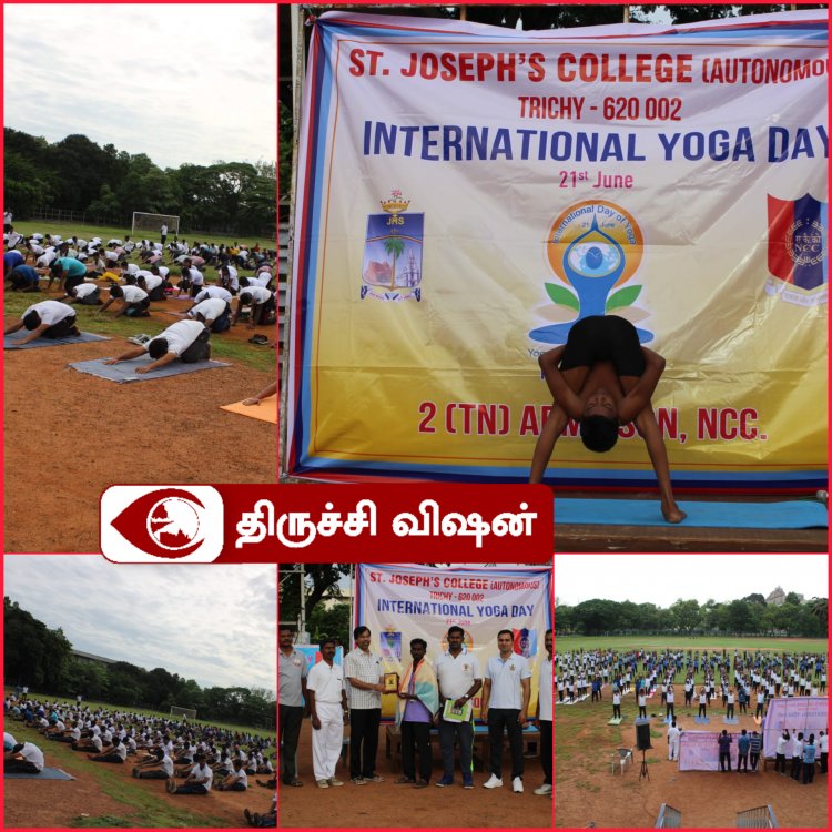 சர்வதேச யோகா தினத்தை முன்னிட்டு ஜோசப்கல்லூரி வளாகத்தில் 2 பட்டாலியன் மற்றும் 3 ஏர் விங் இணைந்து நடத்திய யோகா விழிப்புணர்வு நிகழ்ச்சியில் புனித ஜோஸப் , பிஷ்ப் ஹெர்ப்ட் , நேஷனல், ஶ்ரீமத் ஆண்டவன், சீதாலட்சுமி ராமசுவாமி கல்லூரி மற்றும் R C , ஆரோக்கியமாதா , ஶ்ரிரங்கம் ஆண்கள் மேல் நிலை பள்ளியை சேர்ந்த தேசிய மாணவ படைகளை சேர்ந்த மாணவ மாணவிகள் கலந்து கொண்டனர். இந்நிகழ்ச்சியில் புனித ஜோஸப் கல்லூரியின் முதல்வர் , ANO மற்றும் NCC யை சேர்ந்த PI staff கலந்து கொண்டு யோகா விழிப்புணர்வு ஏற்படுத்தினார்.