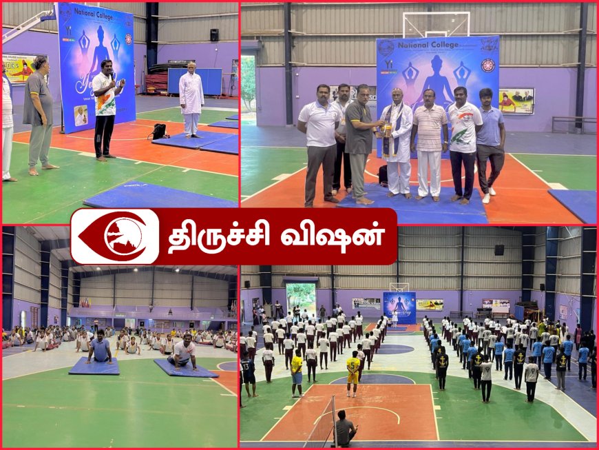 சர்வதேச யோகா தினத்தை முன்னிட்டு ஜூன் 21 இன்று திருச்சி தேசிய கல்லூரியில், சிறப்பு யோகா நிகழ்ச்சி நடைபெற்றது.தொடர்ந்து 8வது ஆண்டாக இந்நிகழ்ச்சி நடைபெற்றது.