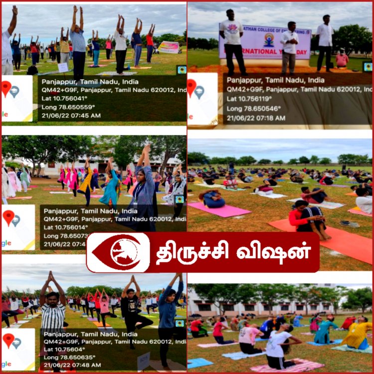 திருச்சி சாரநாதன் பொறியியல் கல்லூரியில் சர்வதேச யோகா தினத்தை முன்னிட்டு மனிதநேய யோகா எனும் தலைப்பில் கல்லூரியின் முதலாம் ஆண்டு மாணவர்கள் மற்றும் பேராசிரியர்களுக்கு யோகா முறைகள் குறித்த பயிற்சி முகாம் இன்று நடைபெற்றது.