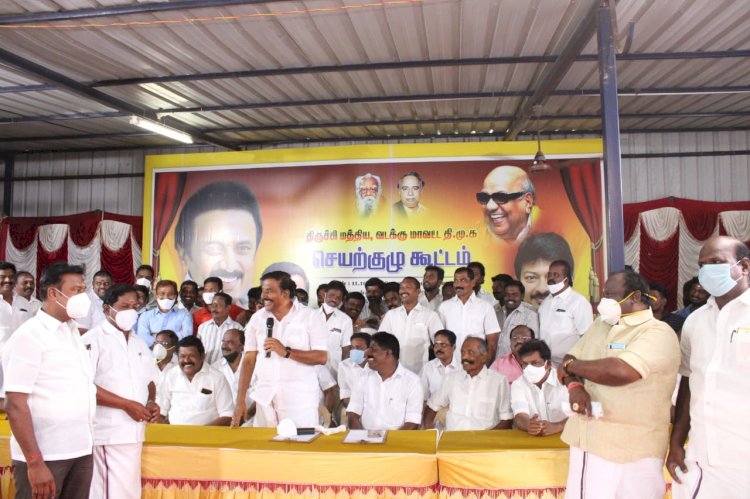 திருச்சி மத்திய மற்றும் வடக்கு மாவட்ட தி.மு.க வின் செயற்குழு கூட்டம்,  தி.மு க முதன்மை செயலாளர் கே.என்.நேரு முன்னிலையில் இன்று நடைப்பெற்றது. இதில் 300 க்கும் மேற்பட்ட செயற்குழு உறுப்பினர்கள் கலந்து கொண்டனர்.