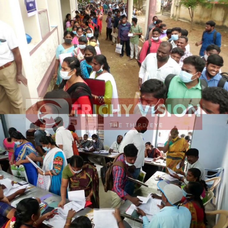 திருச்சி மாவட்டத்தில் கால்நடை பராமரிப்பு உதவியாளர் காலிப்பணியிடங்களுக்கு நேர்காணல் கால்நடை பராமரிப்புத்துறை மண்டல இணை இயக்குநர் அலுவலக வளாகத்தில் இன்று தொடங்கியது. திருச்சியில் காலியாக உள்ள 80 பணியிடங்களுக்கு 12,500 பேர் விண்ணப்பித்துள்ளனர்.