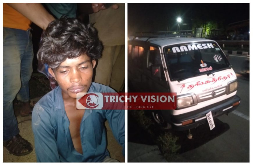 அப்பொழுதுதான் அந்த பகுதியைச் சேர்ந்த ஒருவர் உடனடியாக ஆம்னி வேன் உரிமையாளர் வரதராஜுக்கு போன் செய்துள்ளனர். அவர் தனது கார் காணாமல் தேடி வந்ததாக கூறியுள்ளார். பின்னர் சம்பவ இடத்திற்கு வரதராஜ் விரைந்து வந்ததோடு தனது ஆம்னி வேனை கடத்திச் சென்றவனை பொதுமக்கள் உதவியுடன் திருவெறும்பூர் காவல் நிலையத்தில் ஒப்படைத்தனர். பின்னர் திருவெறும்பூர் போலீசார் அவரிடம் விசாரணை மேற்கொண்ட பொழுது அவன் பழனி தெற்கு நாயக்கன்பட்டி நரிக்குறவர் காலனியை சேர்ந்த காளிதாஸ் மகன் முனீஸ்வரன் ( 21 ) என்பது தெரியவந்தது.