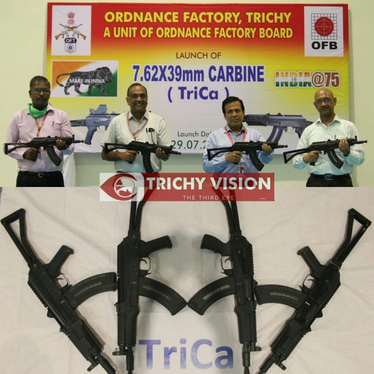 திருச்சி மாவட்டம் நவல்பட்டில் உள்ள படைகலன் தொழிற்சாலையில் திருச்சி கார்பைன் என்ற புதிய ரக துப்பாக்கி உருவாக்கப்பட்டுள்ளது. இதன் அறிமுக விழாவானது இன்று படைகலன் தொழிற்சாலை வளாகத்தில் நடைபெற்றது.