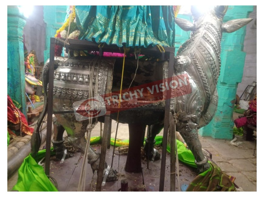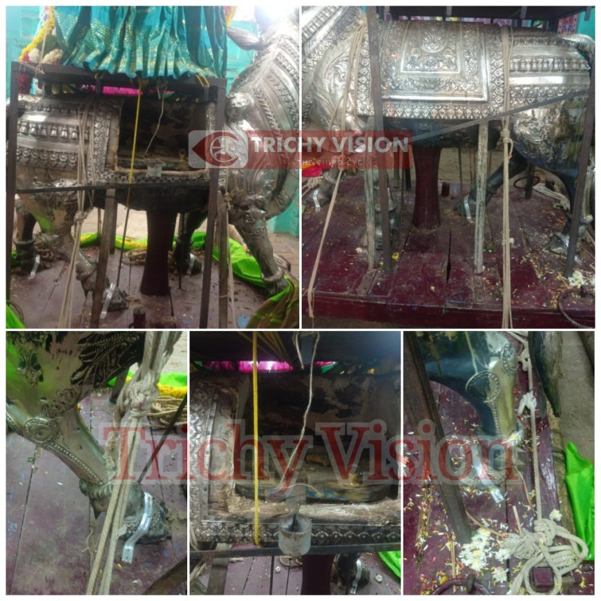 இந்த நிலையில், வரும் சுவாமி வெள்ளி ரிஷபம் வாகனம் மரத்தினால் செய்யப்பட்டு அதன் மேல் வெள்ளி கவசம் பொருத்தப்பட்டுள்ளது. இந்த வெள்ளி ரிஷபம் வாகனம் மிகவும் மோசமாக சிதிலம் அடைந்துள்ளது. வெள்ளி கவசத்திற்குள் இருக்கும் மரங்கள் உடைந்து காணப்படுகிறது மேலும் இந்த ரிஷப வாகனத்தில் கால்கள் தற்காலிகமாக தகரத்தைக் கொண்டு பொருத்தி வைத்துள்ளனர். இதைப்பற்றி ஏன் மலைக்கோட்டை கோவில் நிர்வாகம் கண்டுக்கொள்ளாமல் இருப்பது ஏன்?