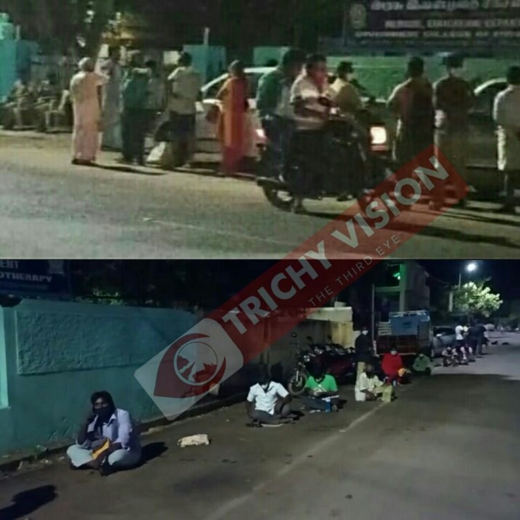 திருச்சியில் ரெம்டெசிவர் மருந்துக்கு இரவிலும் காத்திருக்கும் பொதுமக்கள் பரிதாபம்