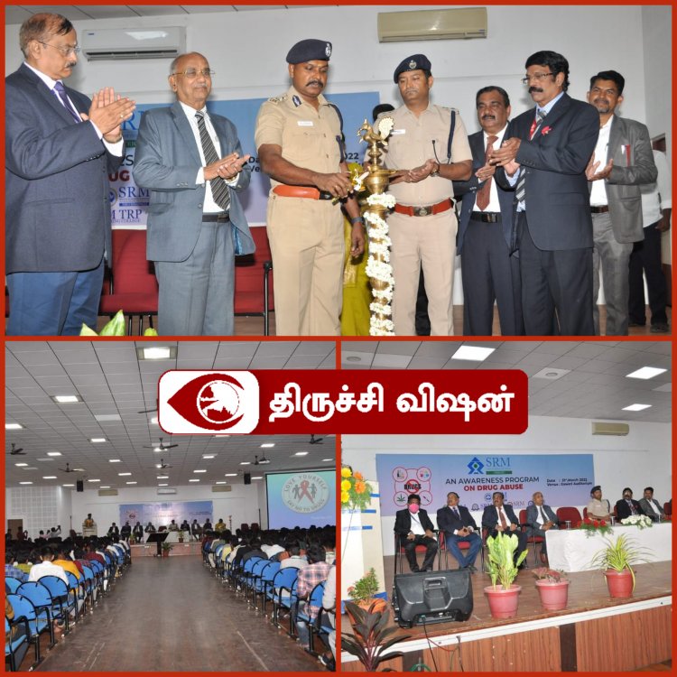 திருச்சி மாவட்டம் சமயபுரம் அருகே இருங்களூர் ஊராட்சியில் உள்ள தனியார் மருத்துவக்கல்லூரி வளாகத்தில்(எஸ்.ஆர்.எம் ) போதை பழக்கத்திற்கு எதிராக விழிப்புணர்வு நிகழ்ச்சி நடைபெற்றது.