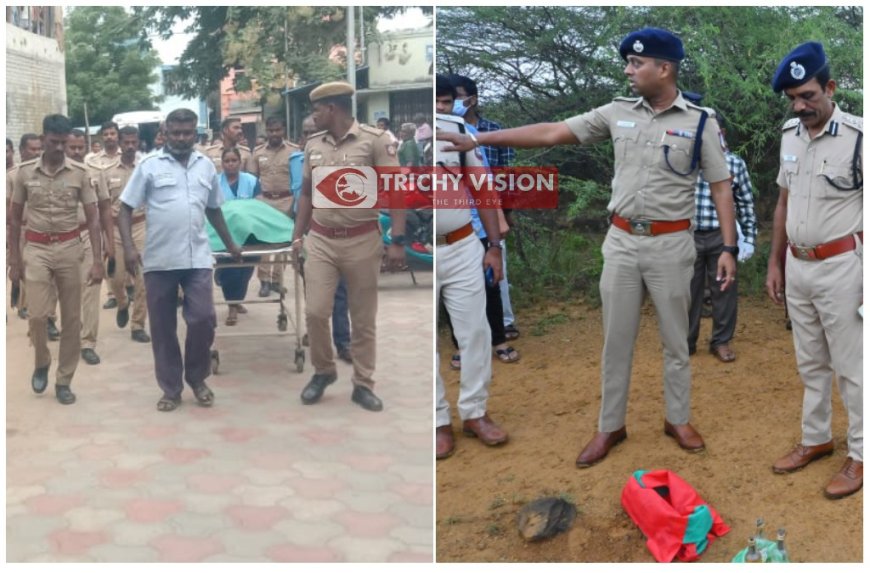 உடனே ஜெகனை மருத்துவ சிகிச்சைக்காக கொண்டு சென்ற பின்னர், ஆய்வாளர் சம்பவ இடத்தில் பார்த்த போது தான் நாட்டு துப்பாக்கி பெட்ரோல் வெடிகுண்டு, சணல் வெடிகுண்டு இருப்பதை கண்டறிந்தனர். வளர்ந்து வரும் ரவுடிகளுக்கு கேங் லீடராக செயல்படுகிறார். ராமஜெயம் கொலைக்கும், இதற்கும் சம்பந்தமில்லை. இப்போது வழக்கு பதிவு செய்யப்பட்டு நீதிபதி விசாரணைக்கு அனுப்பப் போகிறோம். ஜெகன் பல இடங்களில் வழிப்பறி அடிதடி பண்ணுகிறார். இவர் மீது 53 வழக்குகள் உள்ளன திருச்சிராப்பள்ளியில் 8 வழக்குகள், தமிழகம் முழுவதும் பல வழக்குகள் உள்ளன. பல ரவுடிகள் கேங் லீடருடன் சேர்ந்து பல குற்றச்செயல்களில் ஈடுபட்டுள்ளார். சிறையில் இருக்கும் போதெல்லாம் பல ரவுடிகளிடம் தொடர்பு கொண்டு பல குற்றங்களுக்கு திட்டம் தீட்டி உள்ளார். பல முக்கியஸ்தர்களை மிரட்டக்கூடிய வாய்ப்பு இருக்கு ஆனால் அதுபோல புகார்கள் இதுவரை வரவில்லை. ஆனால் அதுபோன்று செயல்படக்கூடிய பேங்க் லீடர் தான் இவர். கொம்பன் ஜெகன் ஏ ப்ளஸ் கேட்டகரியை சேர்ந்தவன். கடந்த 20 நாட்களுக்கு முன்பாக இவரது கூட்டாளிகள் 20 பேரை கைது செய்துள்ளோம் தொடர்ச்சியாக நடவடிக்கைகள் எடுக்கப்பட்டு வருகிறது.