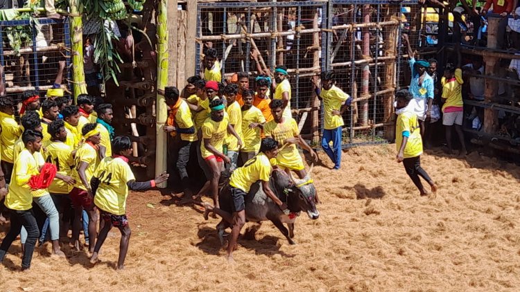 திருச்சி கரடிப்பட்டியில் ஜல்லிக்கட்டு போட்டி-700 காளைகள் பங்கேற்பு