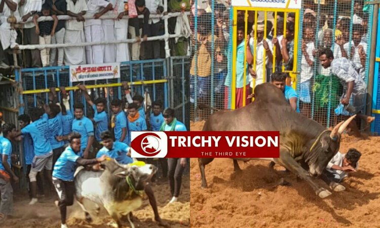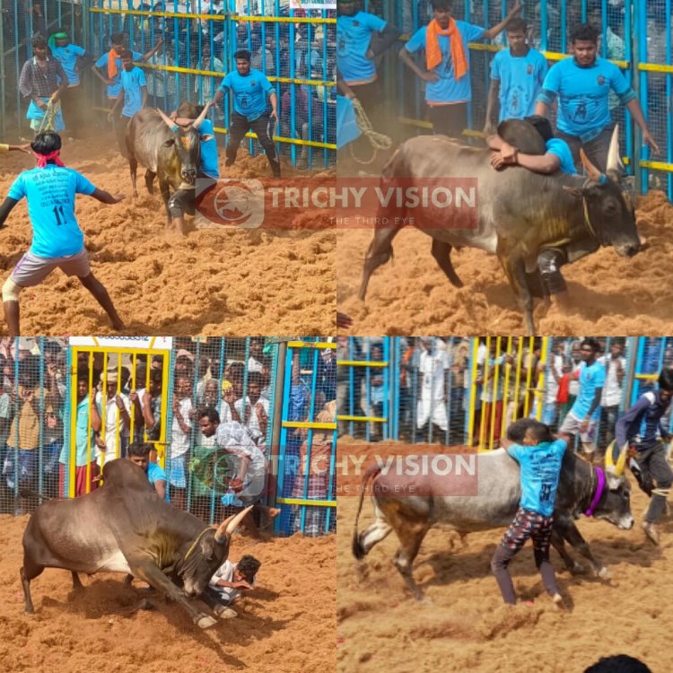 இந்த ஜல்லிக்கட்டு விழாவை ஸ்ரீரங்கம் திமுக சட்டமன்ற உறுப்பினர் பழனியாண்டி கொடியசைத்து தொடங்கி வைத்தார். ஆலயத்தில் ஊர் காளைகளுக்கு சிறப்பு பூஜை செய்யப்பட்ட பின் வாடிவாசலில் அவிழ்க்கப்பட்டதையடுத்து, திருச்சி, தஞ்சை, புதுக்கோட்டை, திண்டுக்கல், மதுரை, ராமநாதபுரம், சிவகங்கை உள்ளிட்ட மாவட்டத்திலிருந்து வந்துள்ள காளைகள் ஒவ்வொன்றாக வாடிவாசல் வழியே அவிழ்க்கப்பட்டு வருகிறது. 50 தொகுப்பாக காளையர்கள் களத்தில் உள்ளனர்.
