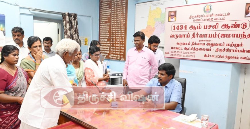 திருச்சி மாவட்டம், மணப்பாறை வட்டாரத்திற்குட்பட்ட பகுதிகளில் இன்று ஜமாபந்தி நிகழ்ச்சி தொடங்கியது. கே.பெரியபட்டி பகுதிக்குட்பட்ட கிராமங்களுக்கு இன்று நடைபெற்ற ஜமாபந்தி