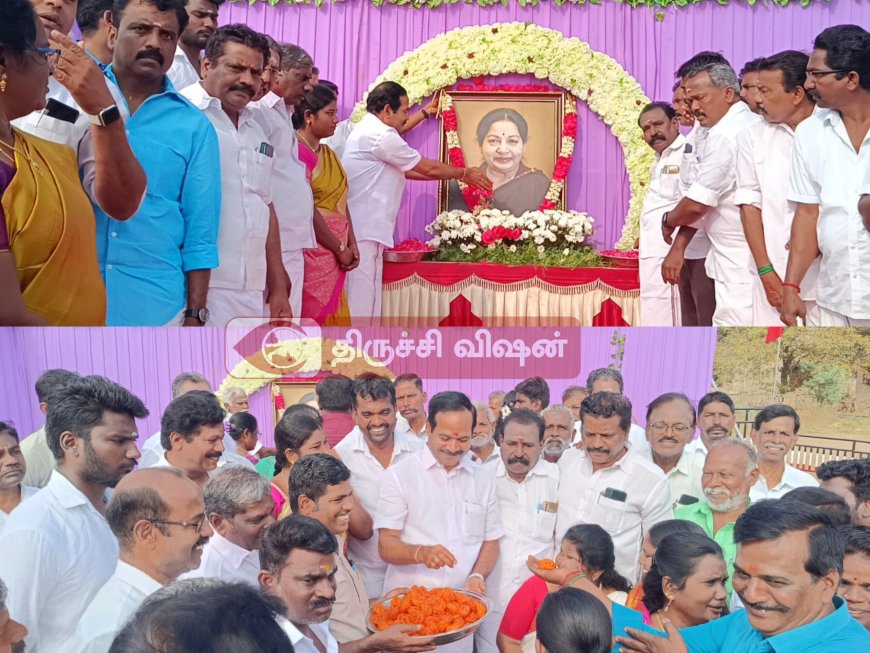 மறைந்த முன்னாள் முதல்வர் ஜெயலலிதாவின் 76வது பிறந்த தினத்தை முன்னிட்டு திருச்சி புறநகர் தெற்கு மாவட்ட கழகம் சார்பில், BHEL தொழிற்சங்க வாயில் உள்ள புரட்சித்தலைவர் எம்ஜிஆரின் திருஉருவ சிலைக்கும், அதன் அருகே அமைக்கப்பட்டு இருந்த இதயதெய்வம் புரட்சித்தலைவி அம்மா திருஉருவப்படத்திற்கும் திருச்சி புறநகர் தெற்கு மாவட்ட கழக செயலாளர் ப.குமார் மாலை அணிவித்து மலர் தூவி மரியாதை செலுத்தினர்.