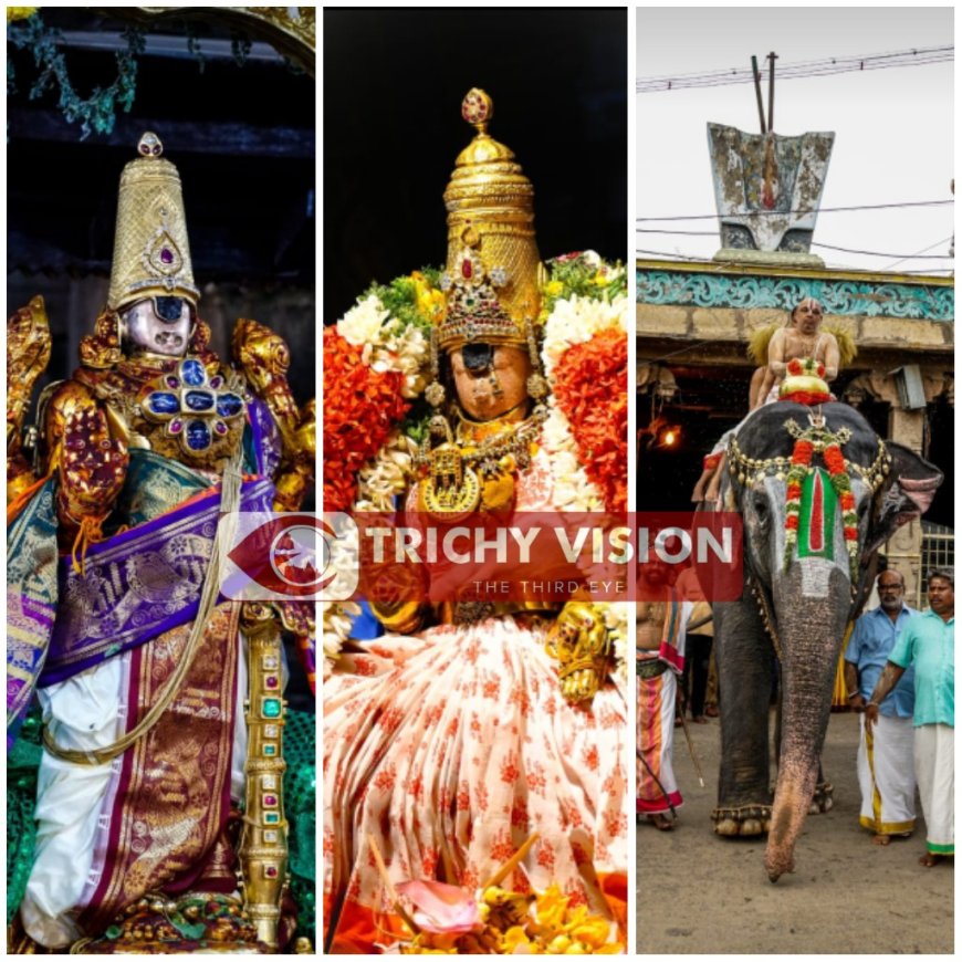 அதன்படி இன்று காலை அம்மா மண்டபத்தில் புனித திருகாவிரியில் இருந்து திருமஞ்சனம் (புனிதநீர்) செய்ய தங்ககுடம் மற்றும் வெள்ளி குடங்களில் நீர் நிரப்பப்பட்டு தங்ககுடத்தை கோவில் யானை ஆண்டாள் மீது வைத்தும், வெள்ளி குடங்களை அர்ச்சகர்கள் தோள்களில் சுமந்தும் மங்கள வாத்தியங்கள் முழங்கிட கோவிலுக்கு ஊர்வலமாக எடுத்துவந்தனர்.