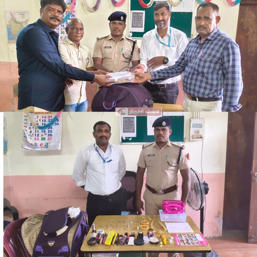 பின்னர், காசோலை விவரங்கள் மூலம் உரிமையாளர் சிவகுமார் (வயது 51), சின்னசெட்டி தெரு, வொரையூர், திருச்சி என அடையாளம் காணப்பட்டார். தேவையான சரிபார்ப்புகள் முடிந்ததும், அந்தப் பையும், அதிலிருந்த மதிப்புமிக்க பொருட்களும் உரியவரிடம் முறையான ரசீது பெற்று ஒப்படைக்கப்பட்டன.