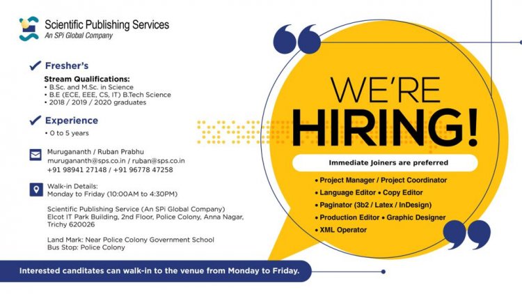 திருச்சி Spi Global தனியார் நிறுவனத்தில் வேலைவாய்ப்பு செய்திகள் வெளியாகி உள்ளது. மேலும் விவரங்களுக்கு கீழே உள்ள படத்தினை பார்க்கலாம்.