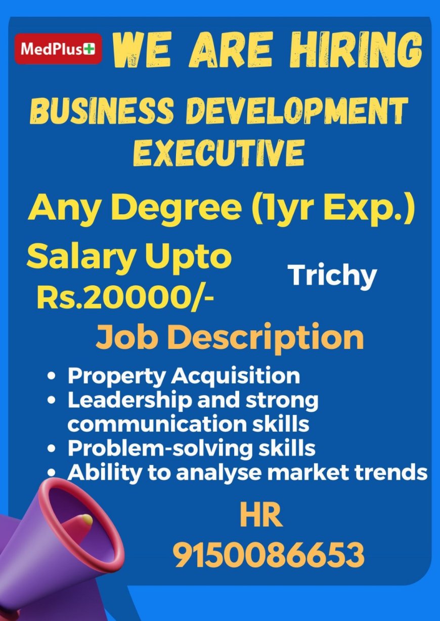 திருச்சியில் செயல்பட்டு வரும் பிரபல MedPlus நிறுவனத்தில் கீழ்க்கண்ட பல்வேறு பணியிடங்களுக்கு வேலை வாய்ப்புகள் அறிவிக்கப்பட்டுள்ளன. மேலும் விவரம் மற்றும் தொடர்புக்கு கீழே உள்ள படத்தை பார்க்கவும்.