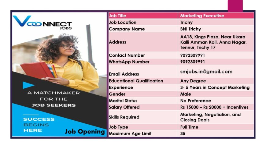 திருச்சியில் தனியார் நிறுவனத்தில் வேலை வாய்ப்புகள் அறிவிக்கப்பட்டுள்ளன மேலும் விவரங்களுக்கு கீழே உள்ள படத்தை காட்டவும்