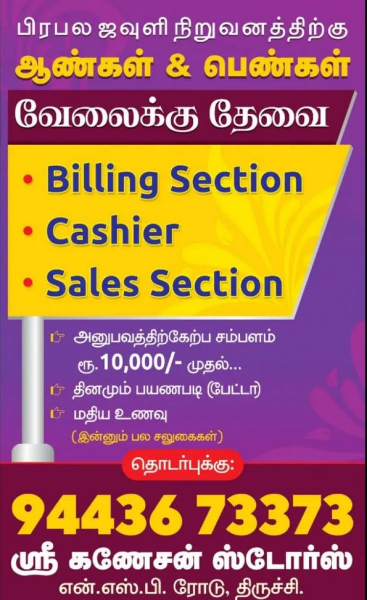 பிரபல ஜவுளி நிறுவனத்தில் வேலை வாய்ப்புகள்