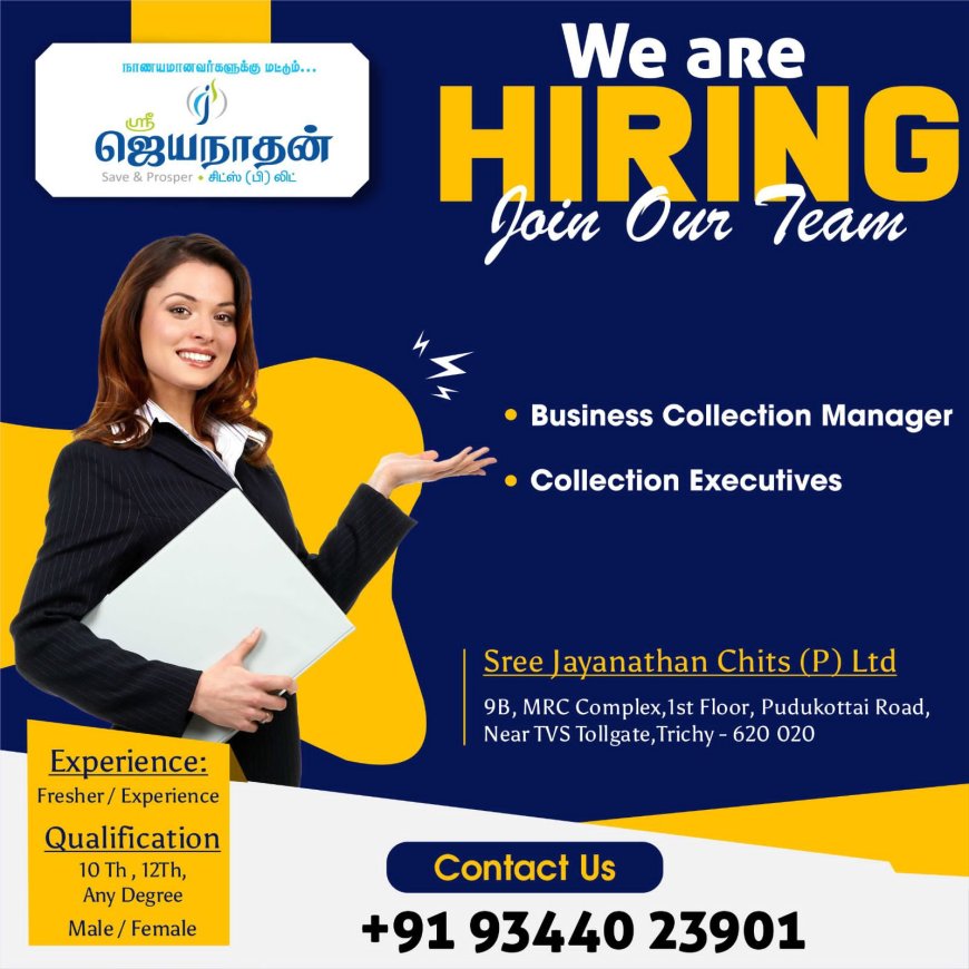திருச்சியில் செயல்பட்டு வரும் ஜெகநாதன் சிட்ஸ்(பி) லிட் நிறுவனத்தில் கீழ்க்கண்ட பணியிடங்களுக்கு வேலை வாய்ப்புகள் அறிவிக்கப்பட்டுள்ளது. மேலும் விபரம் மற்றும் தொடர்புக்கு கீழே உள்ள படத்தை பார்க்கவும்.