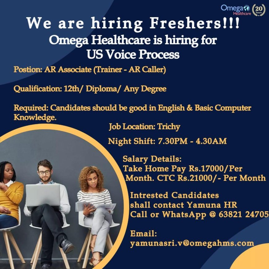 திருச்சியில் செயல்பட்டு வரும் ஒமேகா ஹெல்த் கேர் நிறுவனத்தில் கீழ்கண்ட பணியிடங்களுக்கு வேலைவாய்ப்புகள் அறிவிக்கப்பட்டுள்ளன.