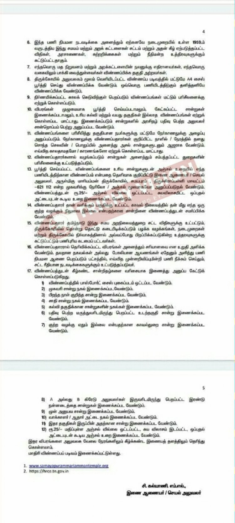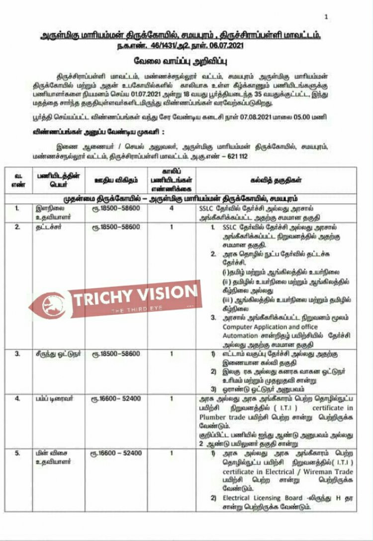 சமயபுரம் மாரியம்மன் கோவிலில் வேலை வாய்ப்பு.