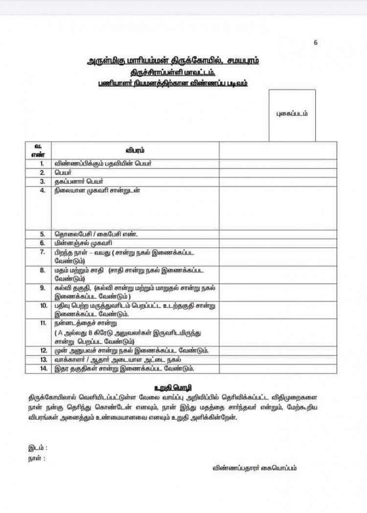 சமயபுரம் மாரியம்மன் கோவிலில் வேலை வாய்ப்பு