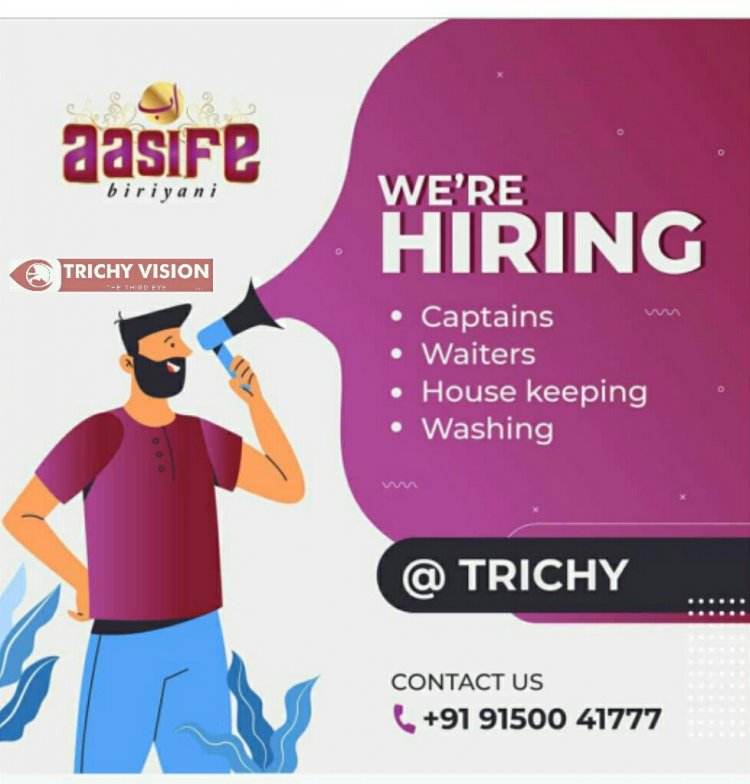 திருச்சி aasife biriyani உணவகத்தில் கீழ்கண்ட பணியிடங்களுக்கு வேலை வாய்ப்புகள் அறிவிக்கப்பட்டுள்ளது. மேலும் விபரங்களுக்கு கீழே உள்ள படத்தை பார்க்கவும்.