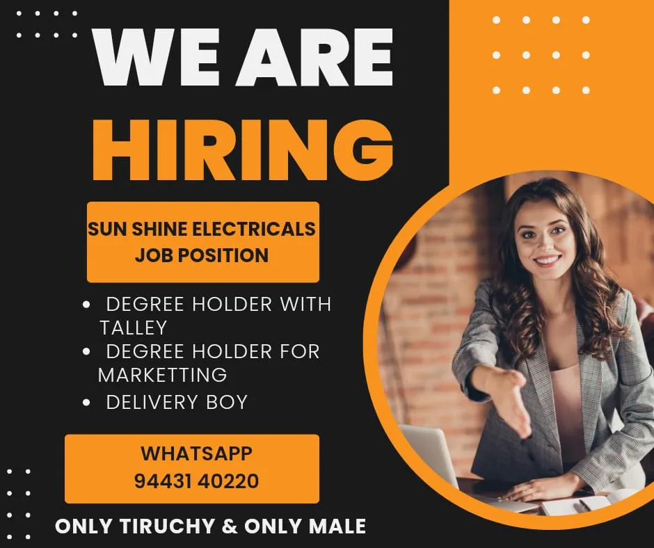 Sun shine நிறுவனத்தில் பணிபுரிய ஆட்கள் தேவை மேலும் விவரங்களுக்கு கீழே உள்ள படத்தை காணவும்.