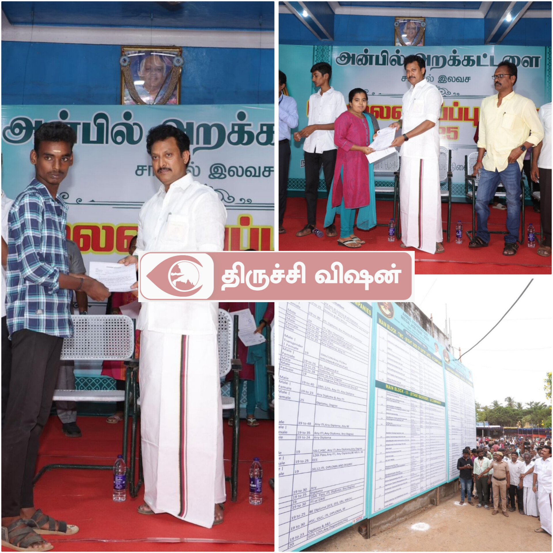 திருவெறும்பூர் சட்டமன்ற உறுப்பினரும் தமிழக பள்ளிக்கல்வித்துறை அமைச்சரும்மான அன்பில் அறக்கட்டளையின் நிறுவனருமான அன்பில் மகேஸ் பொய்யாமொழி அவர்கள் தனது தொகுதி இளைஞர்கள் பயன்பெறும் வகையில் ஆண்டுதோறும் அன்பில் அறக்கட்டளையின் மூலமாக இளைஞர்களுக்கு வேலைவாய்ப்பு முகாமினை நடத்தி வருகின்றனர்
