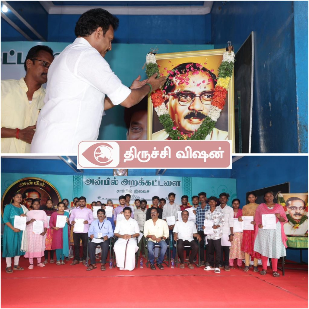 மேலும் இதன் ஒரு பகுதியாக அன்பில் அறக்கட்டளையின் சார்பாக திறுவெறும்புர் முக்குளத்தோர் மேல்நிலை பள்ளியில் வேலைவாய்ப்பு முகாமானது நடைபெற்றது இந்த முகாமில் சுமார்120 க்கும் மேற்பட்ட தனியார் நிறுவனங்கள் பங்கேற்றது மேலும் இந்த முகாமில் சுமார் 3000 மேற்பட்ட இளைஞர்கள் கலந்துகொண்டனர்
