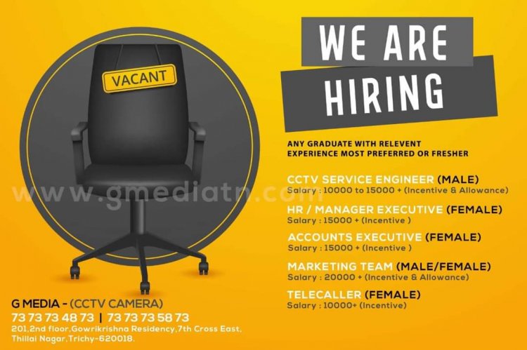 G Media நிறுவனத்தில் வேலைவாய்ப்புகள்அறிவிக்கப்பட்டுள்ளன. மேலும் விவரங்களுக்கு கீழுள்ள படத்தை காணவும்.