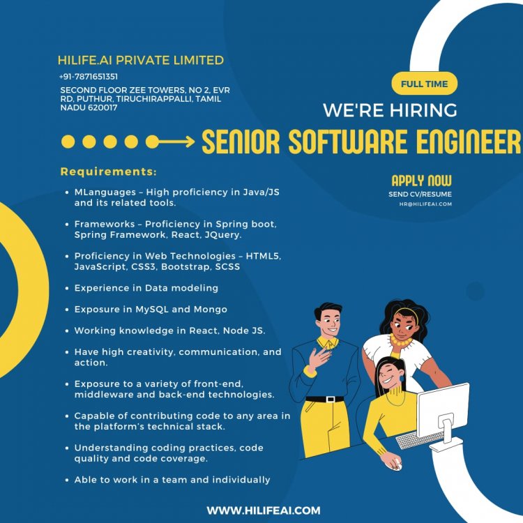 திருச்சியில் செயல்பட்டு வரும் HILIFE.AI நிறுவனத்தில் கீழ்கண்ட பல்வேறு பணியிடங்களுக்கு வேலை வாய்ப்புகள் அறிவிக்கப்பட்டுள்ளது. மேலும் விபரங்களுக்கு கீழே உள்ள படத்தை பார்க்கவும்.