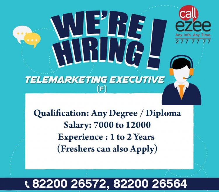 திருச்சியில் செயல்பட்டு வரும் call ezee நிறுவனத்தில் கீழ்கண்ட பணியிடங்களுக்கு வேலை வாய்ப்புகள் அறிவிக்கப்பட்டுள்ளது. மேலும் விபரங்களுக்கு கீழே உள்ள படத்தை பார்க்கவும்.