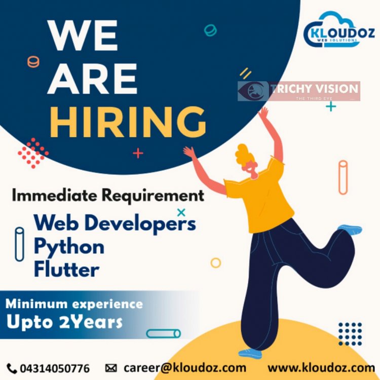 திருச்சி KLOUDOZ நிறுவனத்தில் பல்வேறு பிரிவுகளில் பணியிடங்களுக்கான வேலை வாய்ப்புகள் அறிவிக்கப்பட்டுள்ளது. மேலும் விபரங்களுக்கு கீழே உள்ள படத்தை பார்க்கவும்.