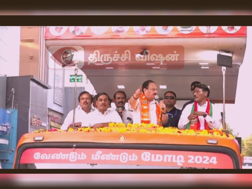 முசிறி – துறையூர் சாலை முதல் திருச்சி – நாமக்கல் சாலை கைகட்டி வரை நாளை (16.04.2024) மாலை 05:00 மணியளவில் பாரதிய ஜனதா கட்சியின் தேசிய தலைவர் ஜே.பி.நாட்டா பெரம்பலூர் நாடாளுமன்ற வேட்பாளர் டாக்டர் பாரிவேந்தரை ஆதரித்து தாமரை சின்னத்தில் வாக்கு கேட்டு ரோடு ஷோ பங்கேற்று பொதுமக்களிடம் வாக்கு கேட்க உள்ளார்