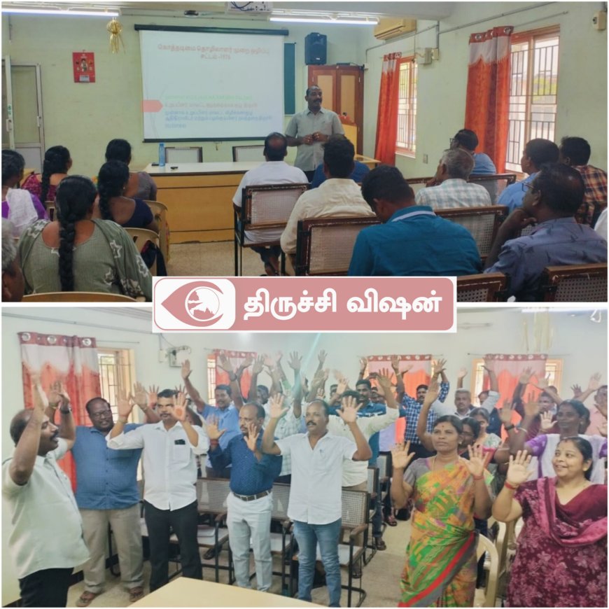 ஜூன் 12 குழந்தை தொழிலாளர் முறை எதிர்ப்பு தினத்தை முன்னிட்டு கொத்தடிமை தொழிலாளர் முறை ஒழிப்பு, பெண்கள் மற்றும் குழந்தைகள் பாதுகாப்பு நலன் சார்த்த சட்டங்கள் குறித்து திருச்சி சரக காவல்துறை பணியிடை பயிற்சி மையத்தில் காவல் துணை கண்காணிப்பாளர் சுதர்சன் தலைமையில் 11.06.25 நடைபெற்றது.