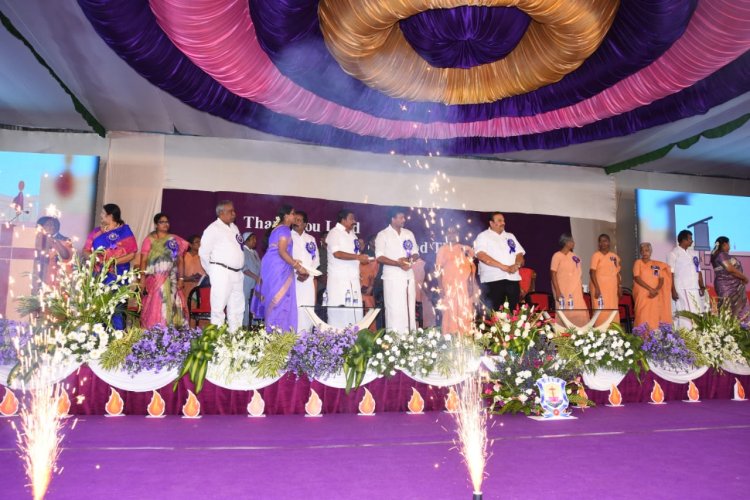 கூட்டுத் திருப்பலியினைத் தொடர்ந்து 100 ஆண்டுகள் நிறைவினை வெளிப்படுத்தும் விதமாக கல்லூரியின் வரலாறு காட்சிப்படுத்தப்பட்டது. நூற்றாண்டு விழா தொடக்க நிகழ்ச்சியின் அறிவிப்பைத் தொடர்ந்து “நிலைத்த வாய்மை நீடித்த தொண்டு உள்ளம்” என்ற விருதுவாக்கும், மீட்பினை உலகிற்கு உணர்த்தும் திருச்சிலுவையும், தன்னம்பிக்கையினை உணர்த்தும் வண்ணத்தையும் உடைய நூற்றாண்டு விழாவின் சின்னமானது வெளியிடப்பட்டது. விழாவின் சிறப்பு விருந்தினரின் சிறப்புரைக்குப் பின் வாழ்த்து செய்திகள் வழங்கப்பட்டது. அதனைத் தொடர்ந்து மாணவிகளின் கலை நிகழ்ச்சிகள் நடைபெற்றன.