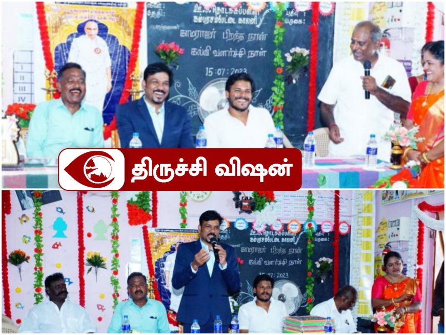 திருச்சிராப்பள்ளி மாவட்டம் திருவரங்கம் வட்டம் கம்பரசம்பேட்டை காலனி தொடக்கப்பள்ளியில் பெருந்தலைவர் காமராஜர் பிறந்த தினத்தை முன்னிட்டு கம்பரசம்பேட்டை காலனி பள்ளி மற்றும் பள்ளி மேலாண்மை குழு இல்லம் தேடி கல்வி குழு இணைந்து பெருந்தலைவர் காமராஜர் பிறந்த நாள் விழா அந்தநல்லூர் வட்டார கல்வி அலுவலர் மருதநாயகம் தலைமையில் நடைபெற்றது.