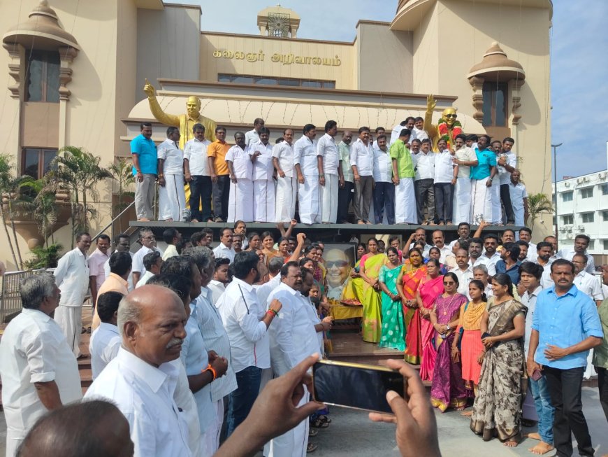 மத்திய மாவட்ட திமுக சார்பில் கருணாநிதி சிலை மாலை அணிவித்து மரியாதை
