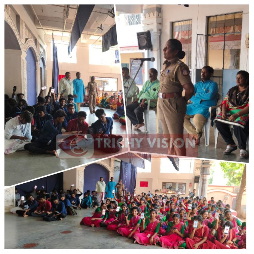 திருச்சி கலைக்காவிரி நுண்கலைக் கல்லூரியில் சாலை பாதுகாப்பு மன்றம் சார்பில் திருச்சி மாநகரக் காவல் துறை வழிகாட்டுதலின்படி கண்ட் டோன்மென்ட் அனைத்து மகளிர் காவல் நிலையத்தின் சிறப்பு காவல் உதவி ஆய்வாளர் வனிதா சிறப்பு விருந்தினராகப் பங்கேற்று காவலன் உதவி செயலி விளக்க விழிப்புணர்வு நடைபெற்றது.