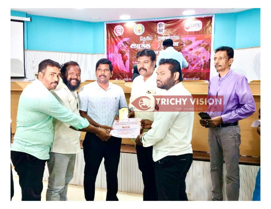 அக்டோபர் 1 தேசிய தன்னார்வ இரத்ததான தினத்தையொட்டி திருச்சி மாவட்ட ஆட்சியர் அலுவலகத்தில் இன்று (18.10.2024) அதிகமான இரத்ததான முகாம் ஏற்பாடு செய்தமைக்காக DYFI இரத்ததான கழகத்திற்கு திருச்சி மாவட்ட ஆட்சியர் பிரதீப் குமார் அவர்கள் பாராட்டி கேடயமும் சான்றிதழும் வழங்கினார்.