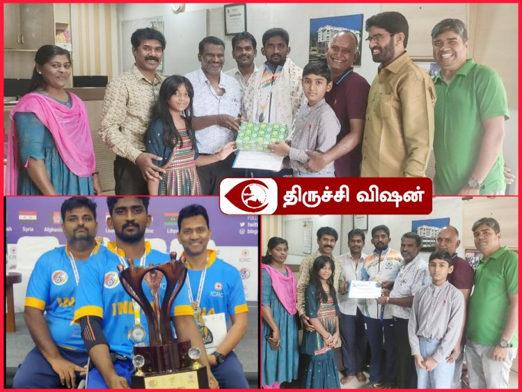 மாற்றுதிறனாளி விளையாட்டு வீரரான ரமேஷ் நொய்டாவில் கூடைப்பந்து போட்டியில் வெள்ளி பதக்கம் வென்று தமிழகதிற்க்கும் திருச்சி மாவட்டதிர்க்கும் பெருமை சேர்த்த ரமேஷை பாராட்டும் நோக்கில் அகில இந்திய மக்கள் உரிமைகள் மற்றும் சட்ட விழிப்புணர்வு கழகம் மற்றும் மாற்றம் அமைப்பின் சார்பில் பாராட்டு நினைவுபரிசு மற்றும் வாழ்த்துக்கள் தெரிவிக்கும் நிகழ்வு நடைபெற்றது.