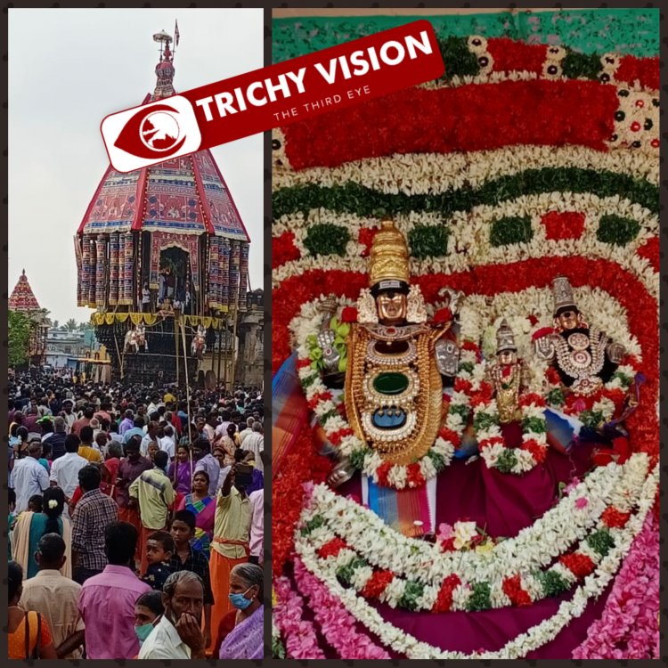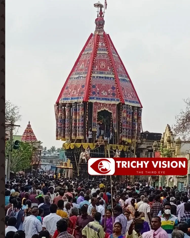 தேரோடத்தில் லால்குடி வருவாய் கோட்டாட்சியர் வைத்தியநாதன் மற்றும் லால்குடி, நன்னிமங்கலம், சாத்தமங்கலம், மும்முடிசோழமங்கலம., இடையாற்றுமங்கலம், திருமங்கலம், ஆங்கரை, மணக்கால் உள்ளிட்ட 10 திற்கும் மேற்பட்ட கிராம்மக்கள் தேரை வடம்பிடித்து இழுத்தனர்.