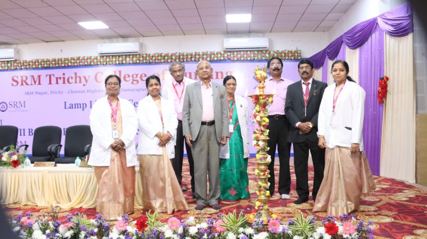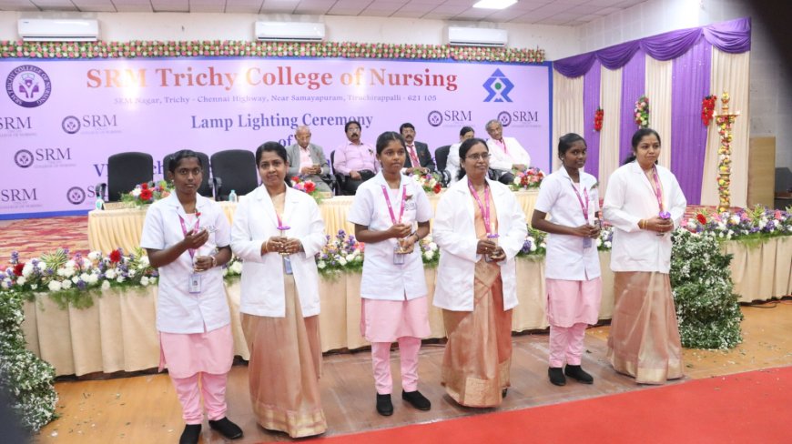 எஸ்.ஆர்.எம் திருச்சி செவிலியர் கல்லூரியின் முதலாமாண்டு மாணவிகளுக்கான விளக்கேற்றி உறுதிமொழி எடுக்கும் விழாவானது 13.02.2025 அன்று கல்லூரி வளாகத்தில் இனிதே நடைபெற்றது. டாக்டர். சுஜா சுரேஷ், முதல்வர், திருச்சி செவிலியர் கல்லூரி. வரவேற்புரையாற்றினார். விருந்தினர்கள் குத்து விளக்கேற்ற அதனைத் தொடர்ந்து முதலாமாண்டு மாணவிகளின் விளக்கேற்றும் நிகழ்ச்சி நடைபெற்றது. டாக்டர் ராஜாமணி செவிலிய டீன் நைட்டிங்கேல் உறுதிமொழியை முன்மொழிய மாணவர்கள் அனைவரும் நைட்டிங்கேல் உறுதிமொழி எடுத்துக் கொண்டனர். மாணவர்கள் விழாவினை டாக்டர்.ஆர்.சிவகுமார், தலைவர், எஸ்.ஆர்.எம் குழும நிறுவனங்கள் (இராமாபுரம் மற்றும் திருச்சி வளாகம்) தலைமையேற்று தலைமை உரையாற்றி சிறபித்தார்.