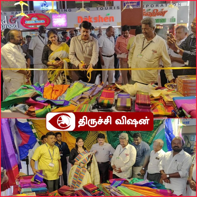 திருப்புவனத்தில் கையால் செய்யப்பட்ட பட்டுப்புடவைகள் காட்சிப்படுத்தும் திருபுவனம் பட்டு விற்பனையகத்தை திருச்சிராப்பள்ளி சந்திப்பு ரயில் நிலையத்தில் கோட்ட ரயில்வே மேலாளர் மணிஷ் அகர்வால் மற்றும ரித்து அகர்வால் திருச்சிராப்பள்ளி தெற்கு ரயில்வே மகளிர் நல அமைப்பின் தலைவர் ஆகியோர் தொடங்கி வைத்தனர்.