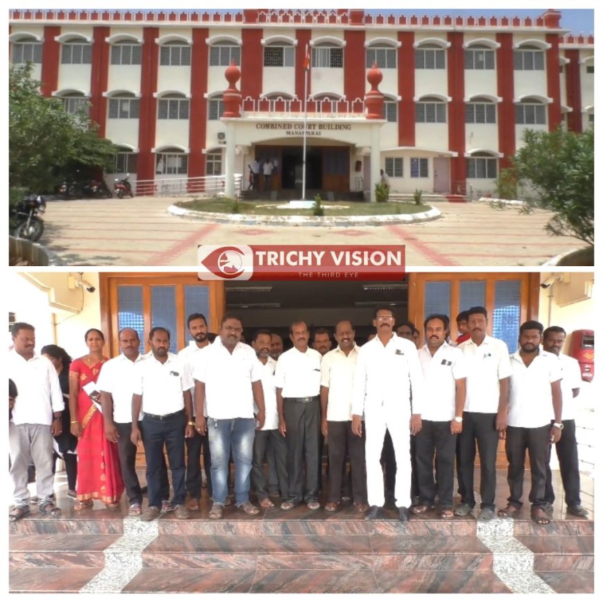 திருச்சி மாவட்டம் மணப்பாறை வழ‌க்க‌றிஞ‌ர்கள் சங்க அவசர பொதுக்குழு கூட்டம் தலைவர் மோசன் தாஸ், செயலாளர் மகேந்திரன் தலைமையில் நடைபெற்றது. மணப்பாறை ஒருங்கிணைந்த நீதிமன்ற வளாகத்தில் சார்பு நீதிமன்றமும், இரண்டு உரிமையியல் நீதிமன்றங்களும், ஒரு குற்றவியல் நடுவர் நீதிமன்றமும் மொத்தம் 4 நீதிமன்றங்கள் செயல்பட்டு வருகிறது.
