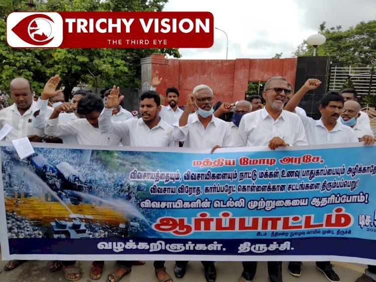 விவசாயிகளுக்கு ஆதரவாக திருச்சியில் வழக்கறிஞர்கள் ஆர்ப்பாட்டம்!!