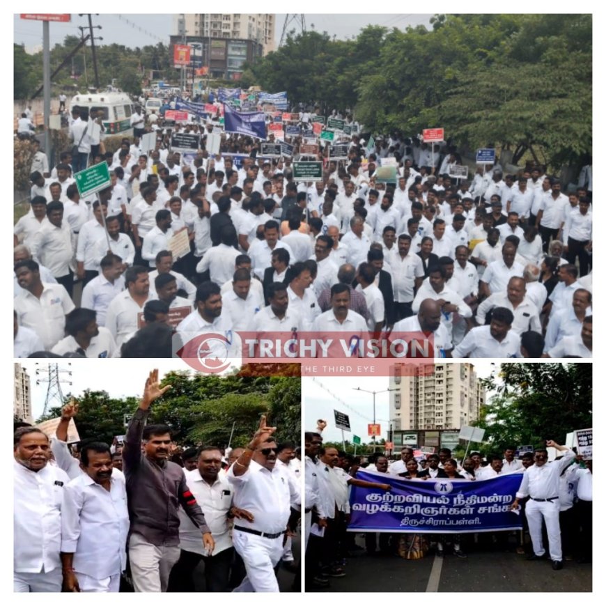 இந்த நிலையில் இன்று திருச்சியில் திருச்சிராப்பள்ளி வழக்கறிஞர்கள் கூட்டமைப்பு மற்றும் ஜாக் இணைந்து நடத்தும் மாபெரும் பேரணி மற்றும் பொதுக்கூட்டம் நடைபெற்று வருகிறது. இதில் தமிழ்நாடு மற்றும் புதுச்சேரியிலிருந்து ஆயிரத்திற்கு மேற்பட்ட வழக்கறிஞர்கள் கலந்து கொண்டு உள்ளனர் .