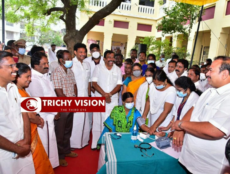 தமிழக அரசின் மருத்துவ மற்றும் மக்கள் நல்வாழ்வு துறை சார்பில் கலைஞரின் வருமுன் காப்போம் திட்ட சிறப்பு மருத்துவ முகாம் திருச்சி புத்தூர் பிஷப் ஹீபர் மேல்நிலைப் பள்ளியில் இன்று நடைபெற்று வருகிறது. இந்த முகாமை தமிழக நகராட்சி நிர்வாக துறை அமைச்சர் கே.என்.நேரு மற்றும் பள்ளி கல்வித்துறை அமைச்சர் அன்பில் மகேஷ் பொய்யாமொழி ஆகியோர் குத்துவிளக்கேற்றி தொடங்கி வைத்தனர்.