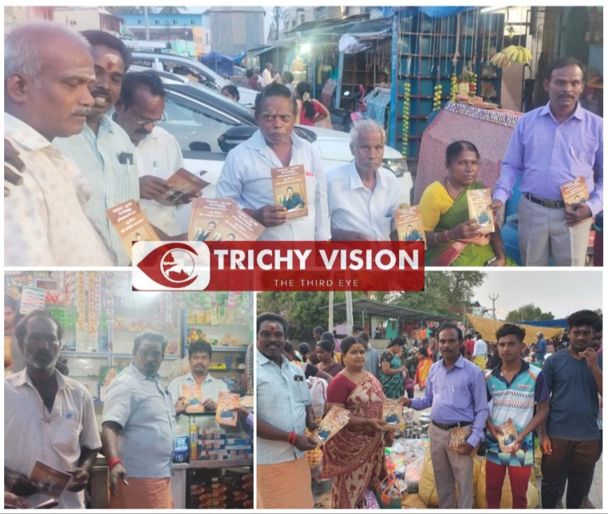 பொதுமக்களிடமும் புதிய நூல் வழங்கி புதிய தமிழகம் கட்சி மாநில துணைக் கொள்கை பரப்பு செயலாளர் வாழையூர் குணா, திருச்சி வடக்கு மாவட்ட செயலாளர் ம.தினகரன் மாநில இளைஞரணி குழு உறுப்பினர் விஜய பிரபு, சமயபுரம் பேரூர் கழக கிளை நிர்வாகிகளான மாதேஷ்வரன், சுபாஷ் ராஜ் சுருளி மற்றும் கட்சியின் நிர்வாகிகள் பலர் கலந்து கொண்டனர்.