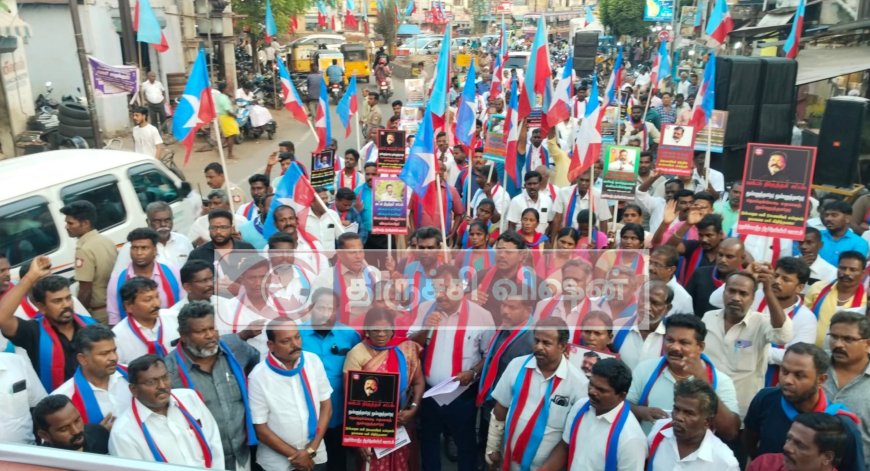இதன் ஒரு பகுதியாக இன்று திருச்சி பாலக்கரை ரவுண்டானா பகுதியில் விடுதலை சிறுத்தைகள் கட்சியின் சார்பில் மாவட்ட செயலாளர்கள் கனியமுதன், புல்லட் லாரன்ஸ், சக்திஅற்றலரசு, முசிறி வழக்கறிஞர் கலைச்செல்வன், குருஅன்புச்செல்வன் ஆகியோர் தலைமையில் கண்டன ஆர்ப்பாட்டம் நடைபெற்றது.மாநில செய்தி தொடர்பாளர் கு..கா.பாவலன்கலந்து கொண்டு கண்டன உரையாற்றினார்.